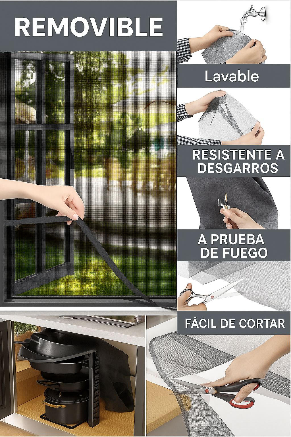 Su tejido ultrafino evita la entrada de mosquitos, moscas y otros insectos sin bloquear la ventilación natural.