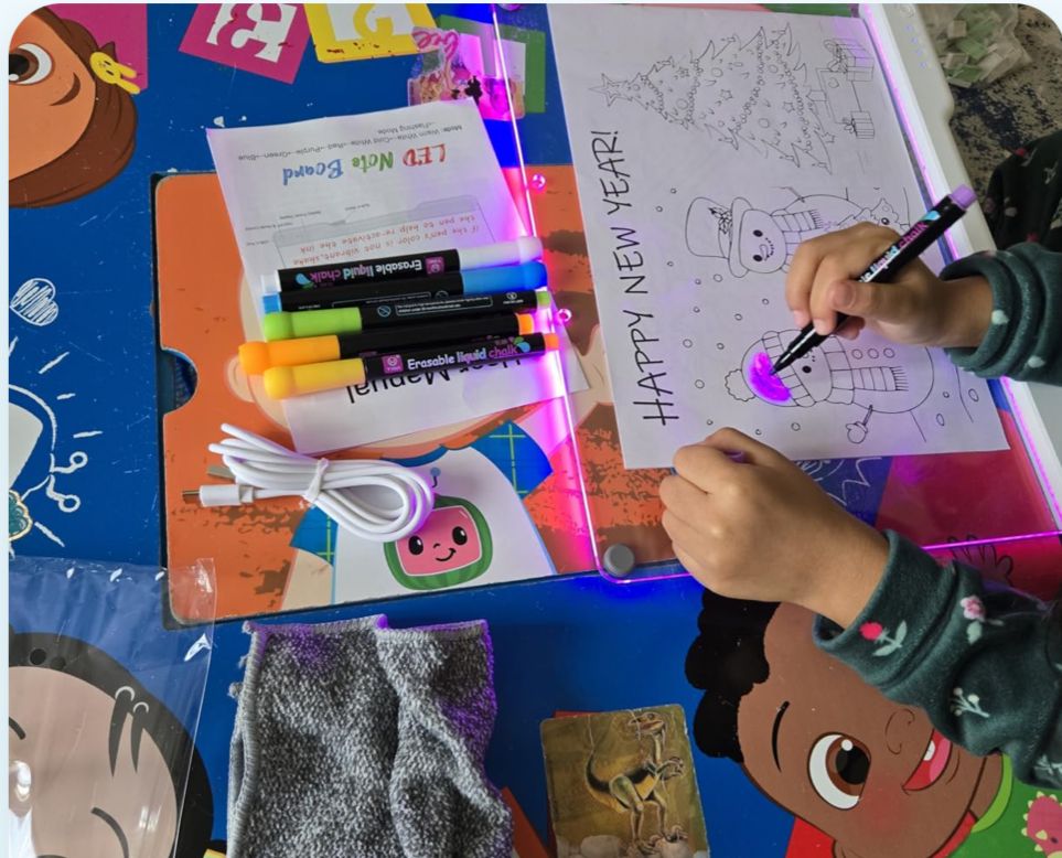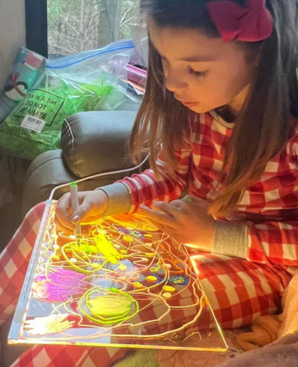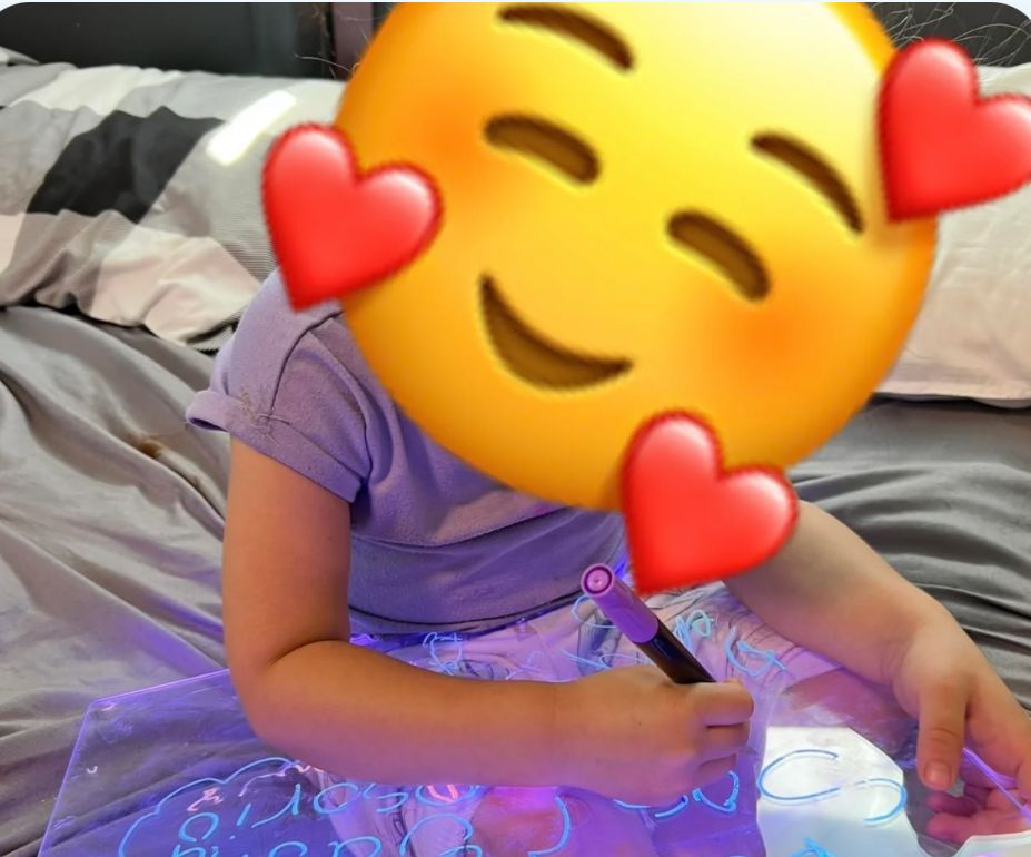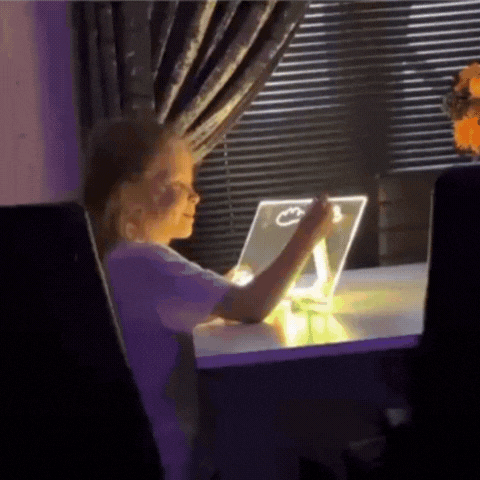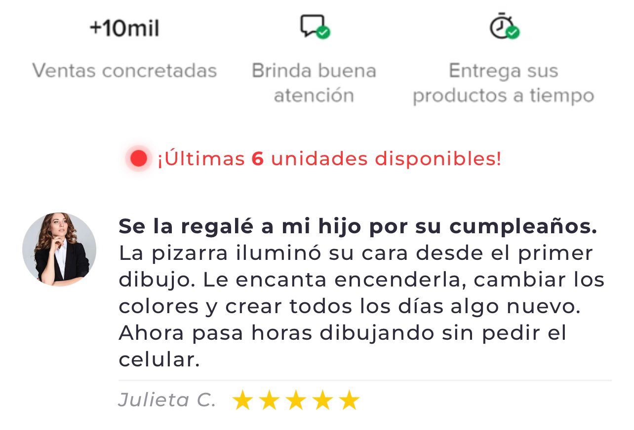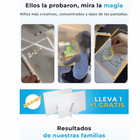Mi hijo con TDAH la usa antes de dormir y eso lo calma muchísimo. Dibujar con luces lo ayuda a bajar revoluciones y relajar la mente sin depender del celular. Su sueño mejoró y las noches son más tranquilas. La pizarra se volvió parte esencial de nuestra rutina.