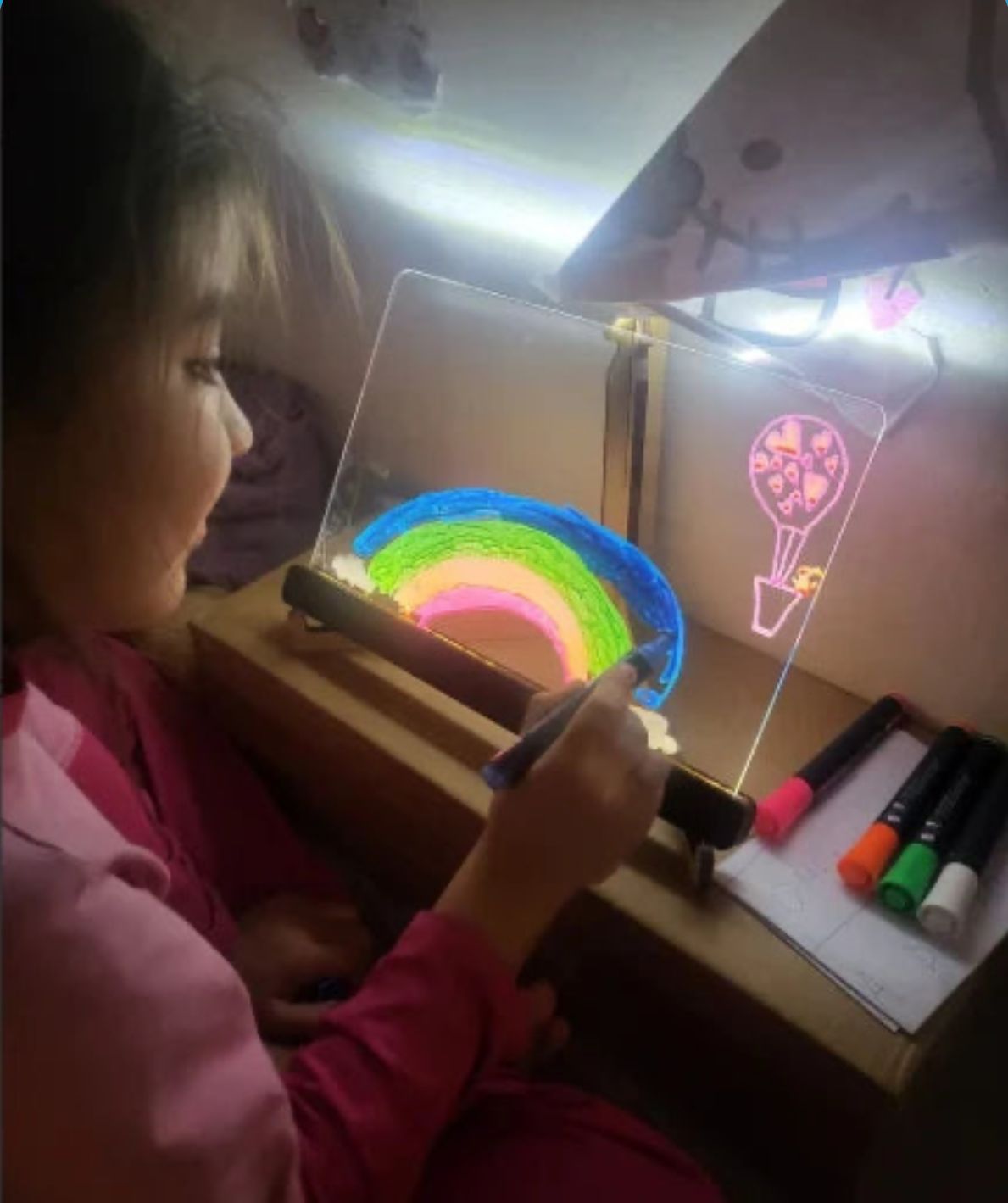 Mi hija con TDAH siempre se distraía con todo, pero la pizarra captó su atención desde el primer día. Las luces lo motivan a crear y mantenerse enfocado sin ansiedad.Logra terminar actividades y disfruta cada dibujo. Ha sido un apoyo enorme para su concentración.