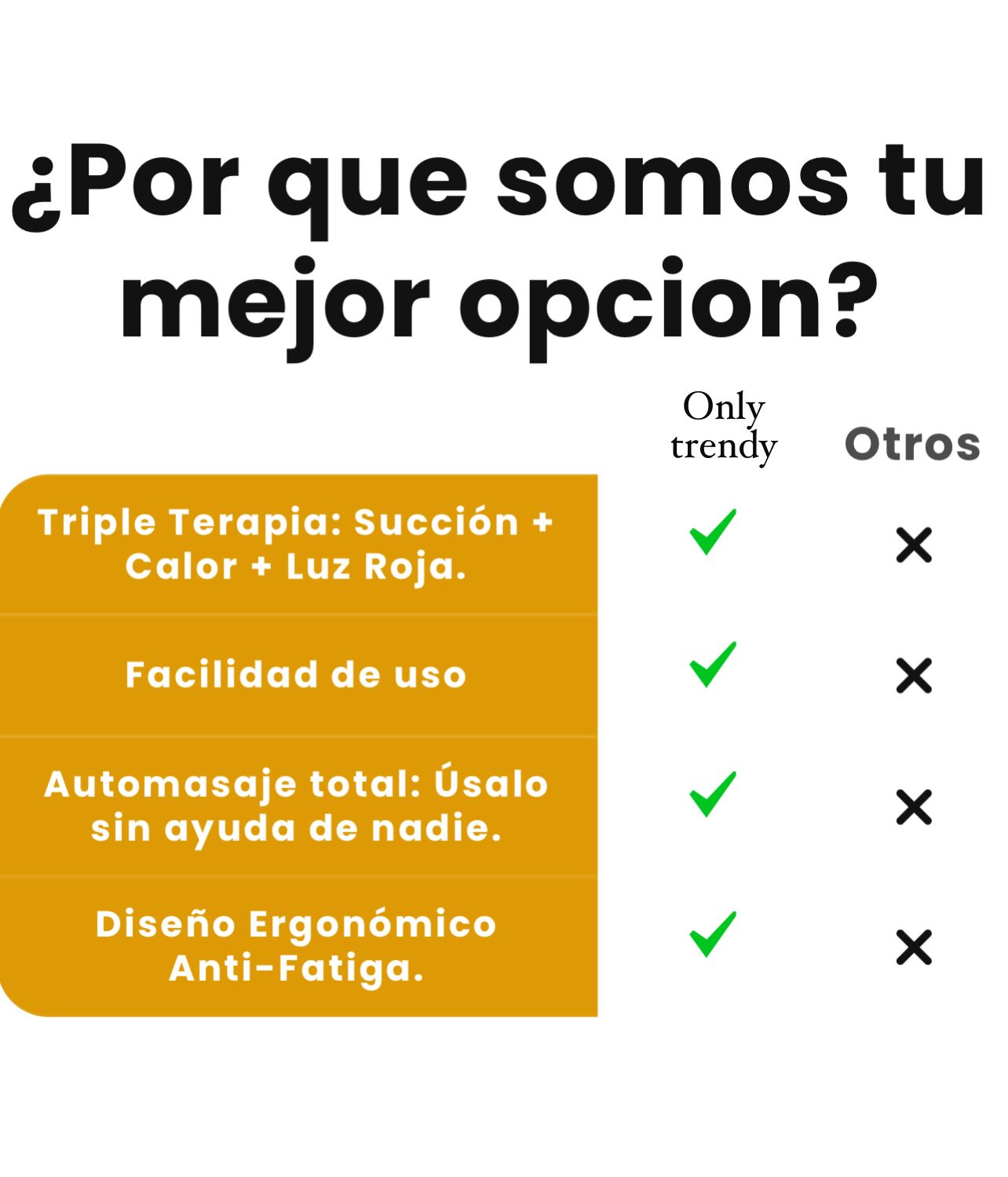 Esto no es una simple rodillera, es un centro de terapia 3 en 1. Un vibrador solo adormece. Nuestro dispositivo usa succión profunda para levantar y liberar el músculo tenso (donde está el nudo) y el calor inteligente para relajarlo. Es la combinación que tus manos y las cremas no pueden igualar. Si tu dolor es tensional, esta es la herramienta definitiva para romper el ciclo de la molestia diaria.